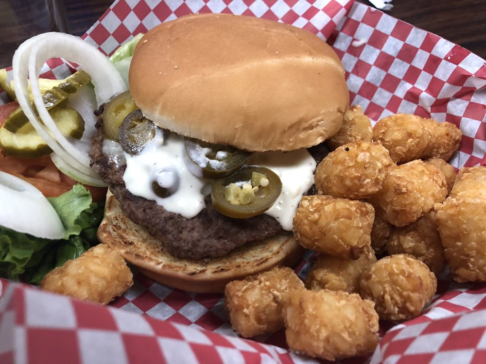 Our all-beef patty served open-faced on 2 slices of Texas toast topped with tater tots, a blanket of warm chili and our queso cheese.